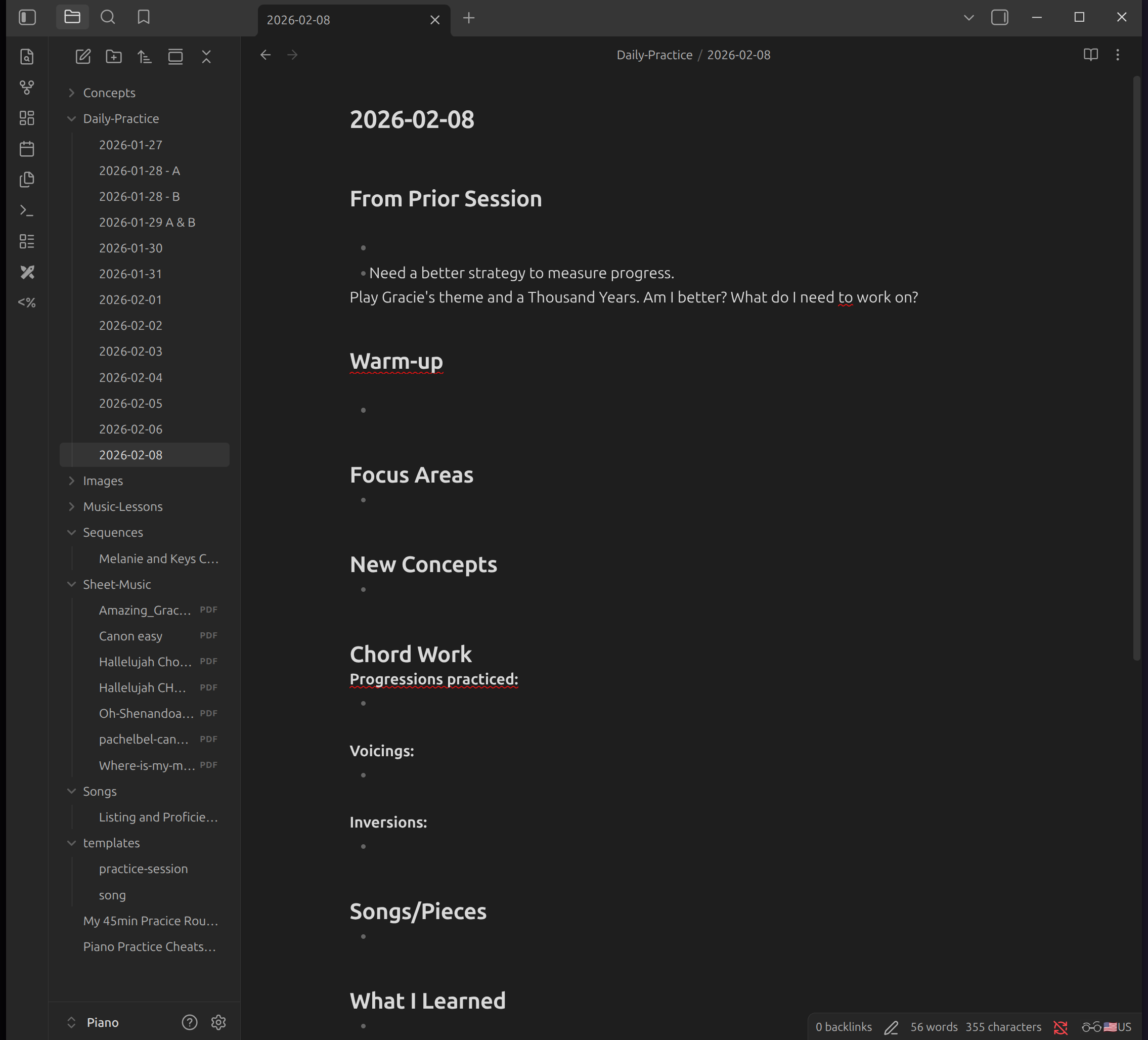 Obsidian Piano Learning System Documentation