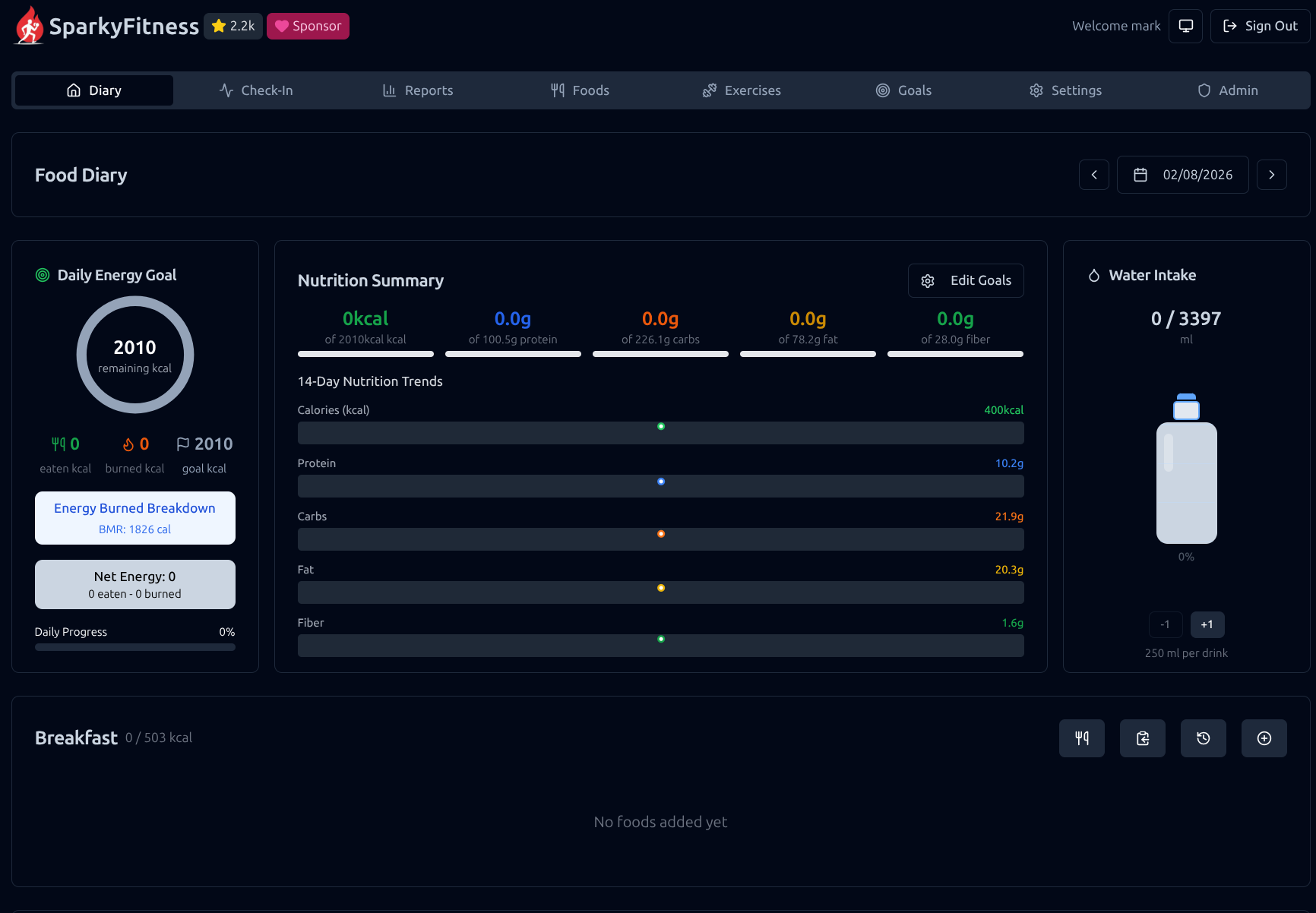 Application: SparkyFitness - Self-hosted fitness tracking alternative to MyFitnessPal